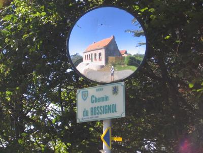 Il reste aussi à trouver sa route de retour. Or les flèches ne sont pas terribles. D’où la photo du photographe dans le miroir. La flèche est en dessous.