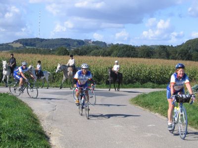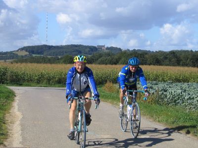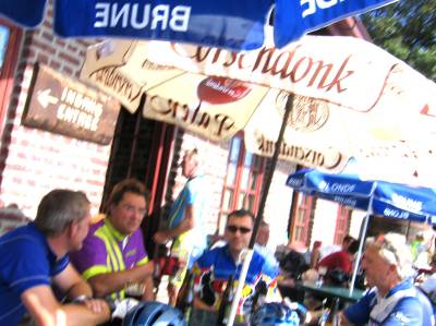 Souvenez-vous des cyclos, déjà attablés lors de l’arrivée au Monteberg. Ils sont toujours là, mais nettement plus flous. Allez savoir pourquoi.