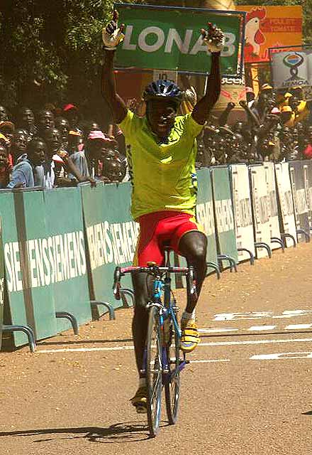 La razzia Ouedraogo ... Avant la journée de repos, l’armada burkinabè présente sur le Tour a pris une option sur la victoire finale en plaçant cinq coureurs au quatre premières places du classement général. Jérémie Ouedraogo, déjà vainqueur de l’étape d’ouverture, a réglé le peloton au sprint et s’empare du même coup du maillot jaune, chronométré dans la même seconde au général que son aîné Saïdou Rouamba et que leur rival camerounais Martinien Tega. Le champion national s’empare également des maillots vert et rose !