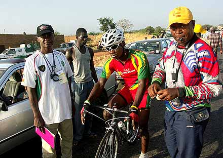 Dès le lendemain, les Camerounais ont affiché un peu plus leurs ambitions en s’emparant du maillot jaune grâce à Joseph Sanda. Pascal Bouba, récent troisième du Tour du Sénégal, reste à distance raisonnable, tandis que Martinien Tega, meilleur jeune de l’épreuve en 2003 (5ème au général), est lui-aussi en embuscade. C’est d’ailleurs lui qui succède à son compatriote dans la tunique dorée au terme de l’étape suivante, de Bouroum-Bouroum à Pa. En arrivant à Koudougou, où le tenant du titre Abdul Wahab Sawadogo s’impose, le classement est toujours dominé par Tega. Mais si le projet de hold-up semble prendre tournure, la rivalité attendue entre les deux grandes puissances du cyclisme africain fait bel et bien rage : le maillot jaune n’a pas quitté les épaules camerounaises depuis trois jours, mais le leader n’a jamais eu plus de trois secondes d’avance sur son plus proche poursuivant, systématiquement burkinabè. « Ce n’est pas une stratégie, regrette Bouba. Nous comptons bien creuser un peu l’écart et consolider le maillot jaune, mais nous savons qu’ils sont forts. Et en plus ils sont nombreux. En tout cas comme chaque seconde compte, nous n’allons rien lâcher et essayer d’attaquer sur tous les sprints intermédiaires pour grappiller des bonifications ».
