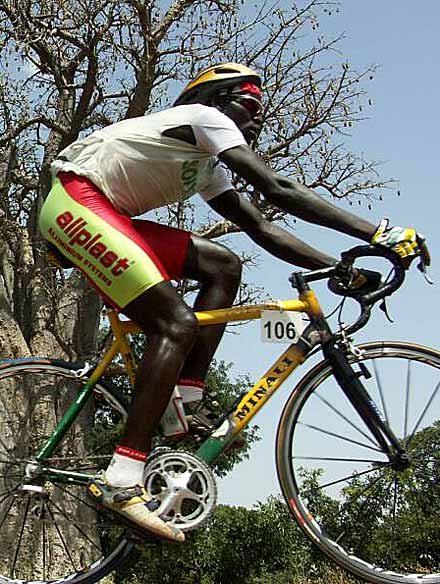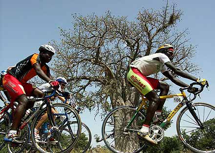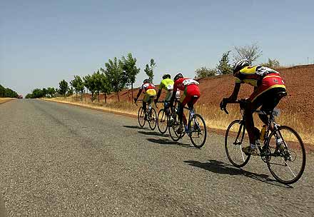 Sawadogo et Cuylits infatigables ... Nullement rassasié par sa victoire à Ouahigouya, Mahamadi Sawadogo (BUR) s’adonne à son activité favorite, l’attaque à outrance, avec son complice dans l’exercice, Gunter Cuylits (BEL). Au km 66 avec Philippe Hamache (FRA), au km 62 avec Benoît Dunet (FRA), au km 74 en couple, puis au km 89 avec Franck Boule, les duettistes sont tout simplement à l’initiative de toutes les offensives. La dernière citée, à laquelle se joint Vicente Lelo (ANG), creuse 1’ d’avance au km 91. Mais les quatre hommes discutent autant qu’ils pédalent, et il est bien connu que les palabres sont les ennemis des échappés fructueuses. Au km 95, l’aventure est terminée, ce qui n’empêche pas Cuylits de retenter un coup vingt kilomètres plus loin, toujours sans succès.