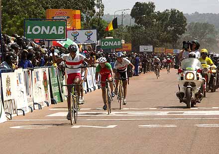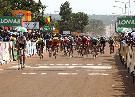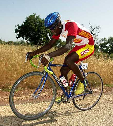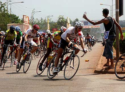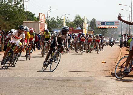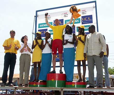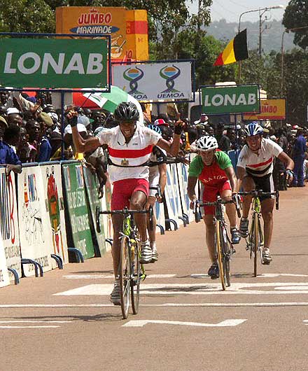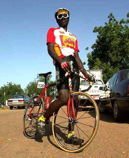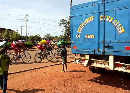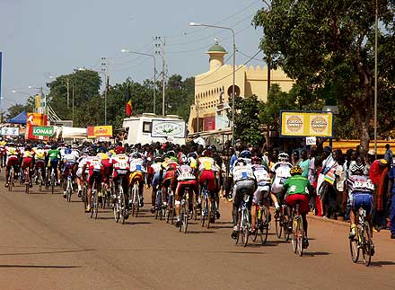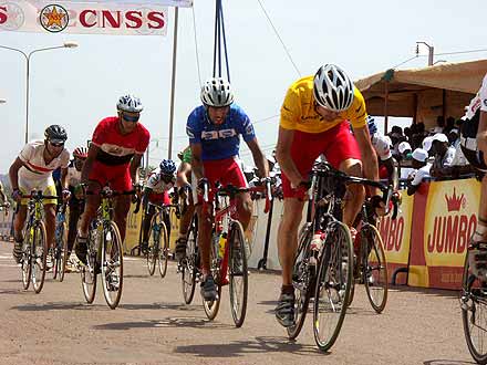 Photo : Ahmed Ouoba Yempabou Le réveil des Pharaons - Les douze tours de circuit de l’étape de Bobo-Dioulasso ont été l’occasion pour les Belges de réaffirmer avec fermeté leur volonté de défendre le maillot jaune. En maintenant à distance raisonnable les différents attaquants du jour, les patrons du peloton ont rempli leur mission. Les coéquipiers de David Verdonck ont toutefois laissé une relative liberté à un groupe dans lequel figurait Ahmed Rashad, décisif dans le final. Le jeune coureur de Suez, vainqueur du Tour d’Egypte 2003, est habitué à briller sur les derniers jours des courses à étapes. Deuxième de l’étape de Tiébélé, il devrait maintenant figurer sur la liste resserrée des hommes à surveiller, spécialement dans l’étape de Koudougou, avec un final sur piste.