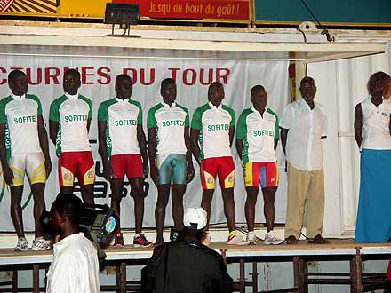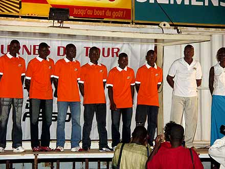 "Condensé d’histoire ..." - Tout le monde s’en étonne, chacun s’en réjouit. Le Tour du Faso, né comme toutes les bonnes idées d’un heureux concours de circonstances, s’apprête à vivre sa vingtième édition. Le matin même, l’édition spéciale de Sidwaya Sport rappelait qu’à l’heure de sa conception, « les obstacles au projet... rendaient la chose aussi réaliste qu’irréalisable ». Et pourtant, sans qu’il y ait eu la moindre impasse depuis 1987, un peloton se prépare à nouveau à sillonner les routes du Burkina-Faso. Au rendez-vous fixé à la Maison des Peuples de Ouagadougou pour la présentation des équipes, on respire autant la solennité que l’euphorie. Comme par respect pour une originale tradition, les retardataires donnent quelques frissons aux organisateurs : les Angolais se font encore une fois tirer l’oreille, mais arrivent à temps pour monter sur le podium, tandis que les Egyptiens restent pour l’heure coincés dans un aéroport de transit. La routine. Au moment de lancer la soirée, Jean-Claude Hérault donne dans le registre de l’émotion, évoquant lui-aussi le chemin parcouru : il s’agit bien de « la plus grande épreuve cycliste du continent africain ». Et là, le défilé des équipes ne fait que confirmer le rapide exposé du directeur de l’épreuve. Si les Burkinabè, menés par un Jérémie Ouedraogo tout juste auréolé de la récompense de meilleur coureur africain de l’année, ambitionnent légitimement de conserver le titre, les prétendants ont rarement semblé aussi nombreux et crédibles. Le Maroc, vainqueur avec Saadoune en 2002, compte faire revivre quelques douloureux souvenirs à ses hôtes ; le Cameroun présente un tableau de chasse imposant cette saison ; la Bretagne aligne deux coureurs de l’équipe Jean Floc’h ; la Belgique, qui a toujours collectionné les places d’honneur, a sorti tous ses atouts ; le Sénégal promet de poursuivre sa montée en puissance ; et l’Egypte fait déjà trembler à distance ! Avec un tel plateau, la vingtième, c’est le feu d’artifice que les connaisseurs du cyclisme africain pouvaient espérer. On y sent se dessiner des revanches, des changements de génération sont attendus, des duels et des rencontres aussi. Conscient à la fois de l’enjeu que représente le Tour du Faso et de la difficulté de la tâche qui reste à accomplir, Jean-Pierre Palm lance en conclusion une invitation à la performance aux Etalons du jour et à ceux du futur : « il faut que ces athlètes parviennent à vivre de leur sport dans ce pays », projette le Ministre des Sports. La professionnalisation, prochain chantier à mener pour le cyclisme burkinabè. Texte : Louis Doucet - A.S.O .