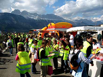 Chaque participant s’est vu offrir un gilet fluorescent de sécurité et quatre tickets pour les boissons et la restauration avec le sourire par des dizaines de charmantes hôtesses habillés en rouge.