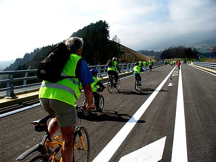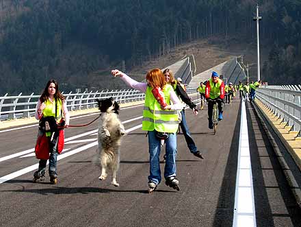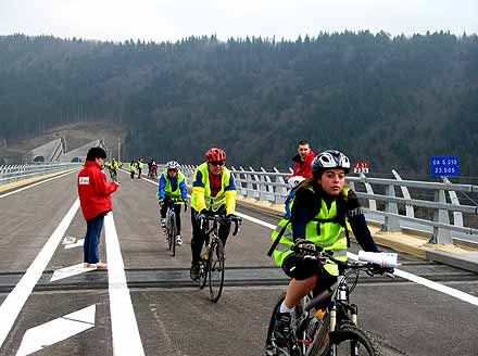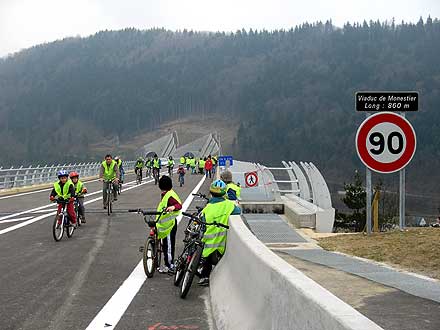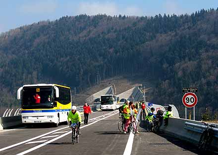 Près de 3 000 personnes enthousiastes ont répondu à cet appel à pied, à vélo ou en roller. Contrairement au viaduc de Millau, il ne s’agissait pas ici d’une opération commerciale puisque tout était gratuit et remarquablement organisé, avec également des navettes de bus.