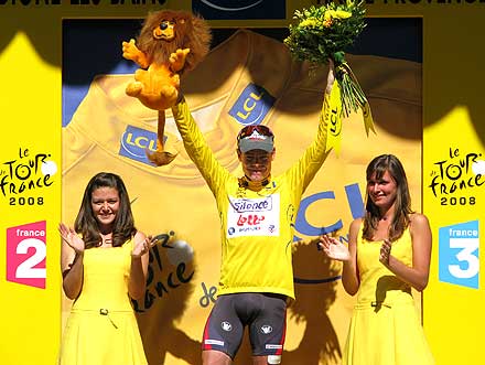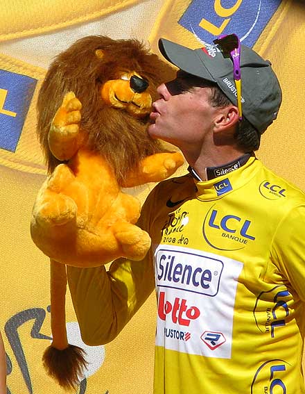 La bise au Lion ... Cadel Evans toujours en Jaune ... Mais pour combien de temps !