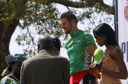 Lionel Syne, en tout terrain ... Attendue comme un des rendez-vous décisifs de cette 22ème édition, l’étape de Ziniaré a confirmé l’emprise de l’équipe belge sur la course. Lionel Syne, spécialiste du sprint et déjà vainqueur du criterium de Bobo-Dioulasso cette année, s’impose cette fois sur un final digne d’une explication de vététistes. Son coéquipier Guy Smet, passé tout près d’une sanction sans appel en raison d’une crevaison à 8 km de l’arrivée, au plus fort de la bataille, est parvenu à combler suffisamment son retard pour déjouer le hold-up préparé par Teguimaha. Si le Camerounais se replace à 24 secondes à trois jours de l’arrivée, le nombre de rivaux a diminué pour le Maillot Jaune. Les deux coureurs du Team Reine Blanche, Bastien Léraud et Vincent Graczyk ont disparu des débats, alors que la deuxième place du général est revenue à Laurent Donnay, qui se hisse à 20’’ grâce aux bonifications empochées.