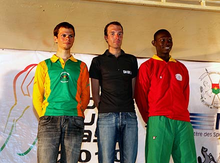 Les 3 premiers au général : Julien Schick, Ouedraogo Rasmané, Damien Leguay