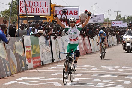 Le sprint final de l’algérien est le bon, il s’impose à Ziniaré devant le français. Azzadine LAGAB permet à son pays l’Algérie d’empocher une première victoire d’étape dans cette 25ème édition du Tour du Faso. Texte : Firmin OUATTARA Voir le -> - Classements étape 2 Yako -> Ziniaré