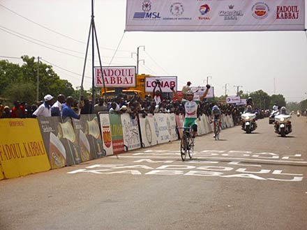 Ils se mettent en évidence dès le départ, c’est Reguigui Youcef qui se poste à l’avant avec un coureur de l’équipe de la Sarthe ainsi que d’un Burkinabé, Seydou Bamogo.