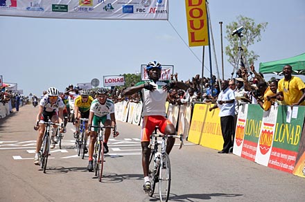 Clovis Guewa règle ses deux protagonistes au sprint et s’adjuge donc le dernier point. Alors on s’attendait à une bataille très engagés entre les coureurs qui ont dominé cette course. C’est là que le jeune Burkinabé Rasmané Ouédraogo confirme aussi ces grands talents de sprinter. Il s’impose au sprint sur la ligne d’arrivée à Pâ.