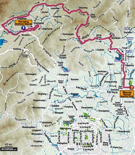 ---> Etape 4 (Sam 8 Oct) : Yan Qing Gui Chuan Square -> Shunyl Olympic Rowing and Canoeing Center : 189,5 km